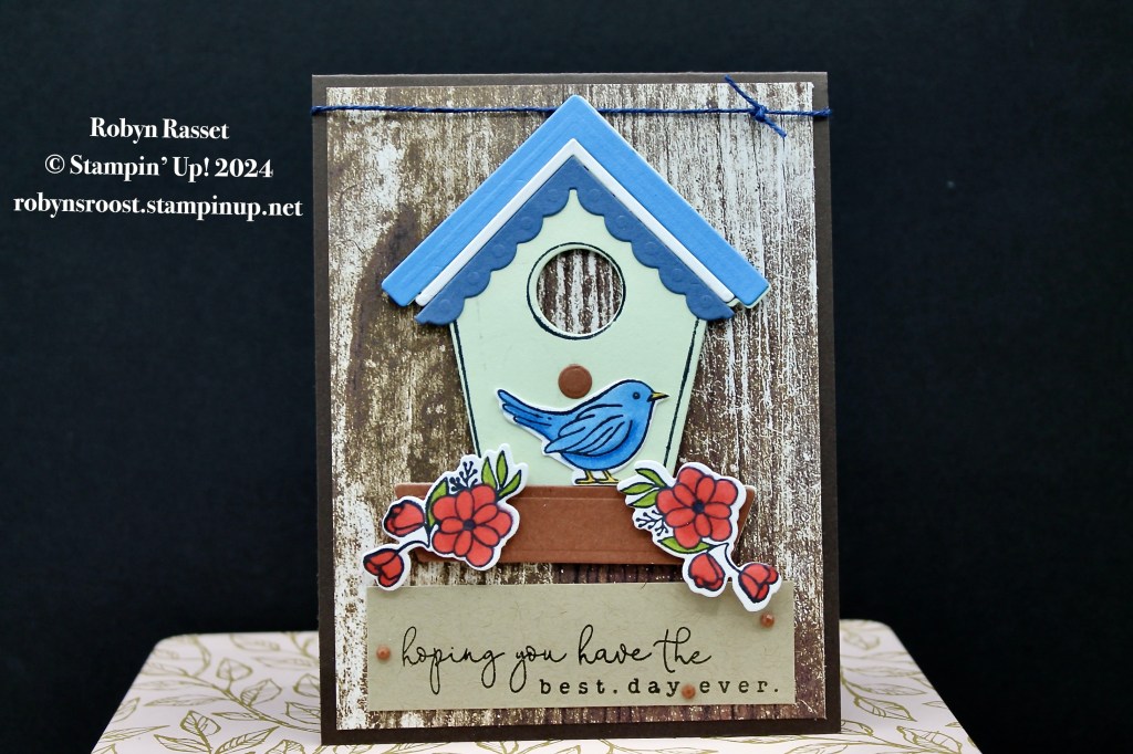 It’s another birdhouse card today. Today’s birdhouse was created with different colors of cardstock cut with the Country Birdhouse Dies.
