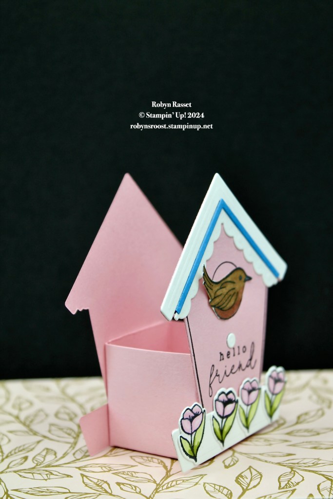 Instead of a card, today I’ve got a cute little treat box created using the Country Birdhouse Bundle (stamp set and die set).