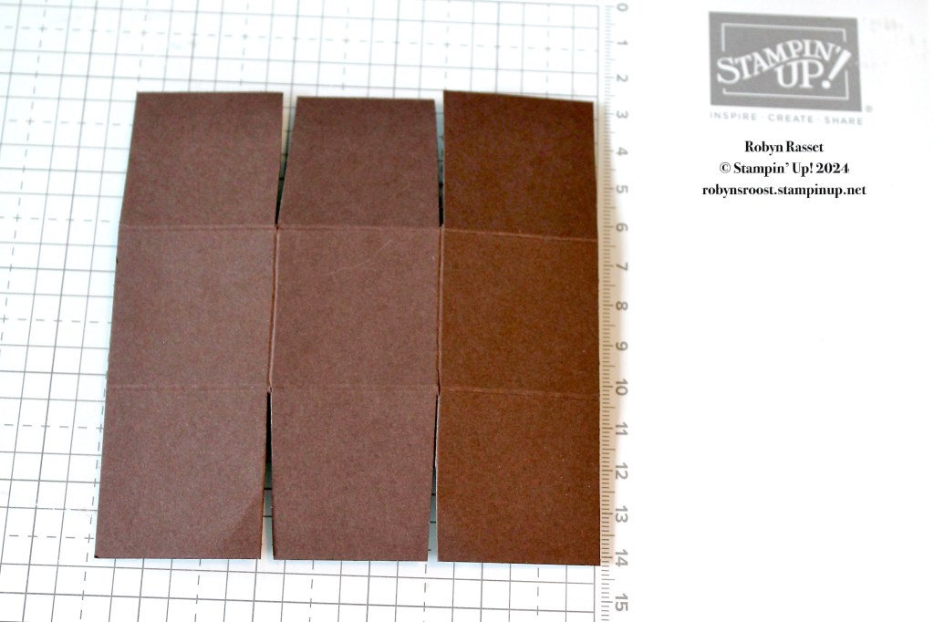 The color and decoration possibilities are endless! This card uses Bubble Bath card stock for the box and main birdhouse. The bird is colored to resemble a robin. This project is CASE’d from my friend Connie Plaumann. The box starts with a 4 1/2″ square and it is scored at 1 1/2″ and 3″ on both sides. Then cut on the score lines on opposite sides to create tabs as shown on the photo below.