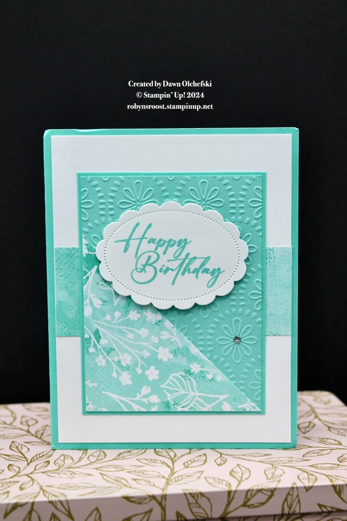 Today I’ve got a birthday card that was sent to me for my birthday by Dawn Olchefski. It uses items from the Unbounded Beauty Suite and the new Summer Splash In-colors.