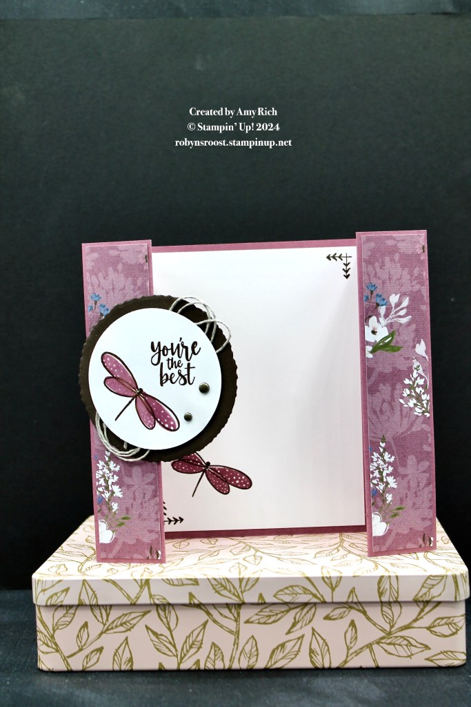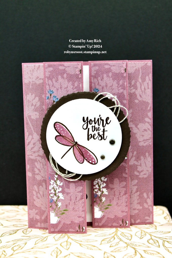 This gate fold card by Amy Rich has a whole different feel with the Wildly Flowering Designer Series Paper, Moody Mauve and Early Espresso colors. I think it feels more dramatic, how about you?