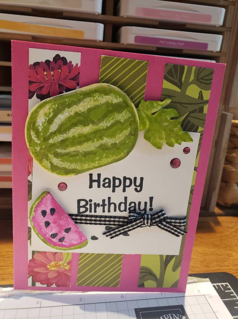 Today’s card was the sample for my Wednesday Mystery Stamping on my Creative Chicks Facebook Group. Two or three Wednesdays a month anyone who wants to can join in and create a card. The supply list is posted on Sunday or Monday and then clues are posted starting at noon on Wednesday. I chose to use the Online Exclusive Potions & Spells stamp set. This set is available as a Bundle with the Potions & Spells Dies but none of the dies were used in the card that I made.