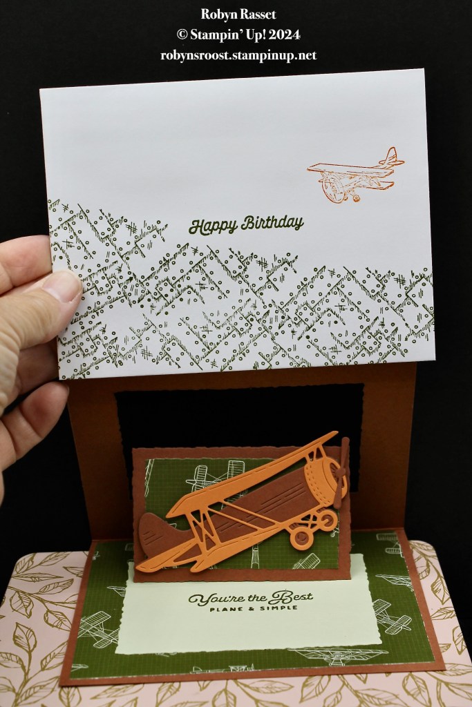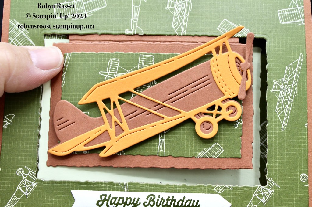 - Die cut the airplane from the two colors and adhere together. Add to the card with dimensionals.