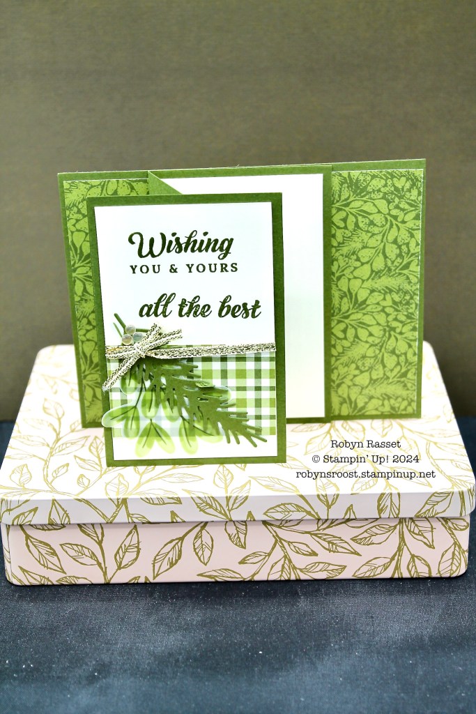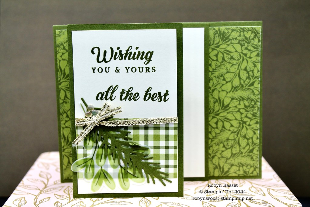 For the second card, I pulled in some greenery from the Winterly Tree Tops stamp set (coming in the Mini Catalog starting Sept 4, Item 164184).