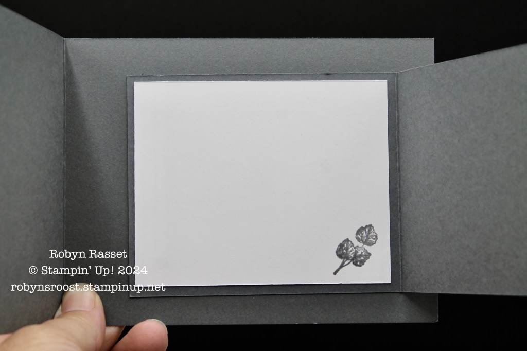 The card is a Fun Fold, which basically has two card bases, each facing a different direction. I love the monochromatic Basic Gray and White colors!
