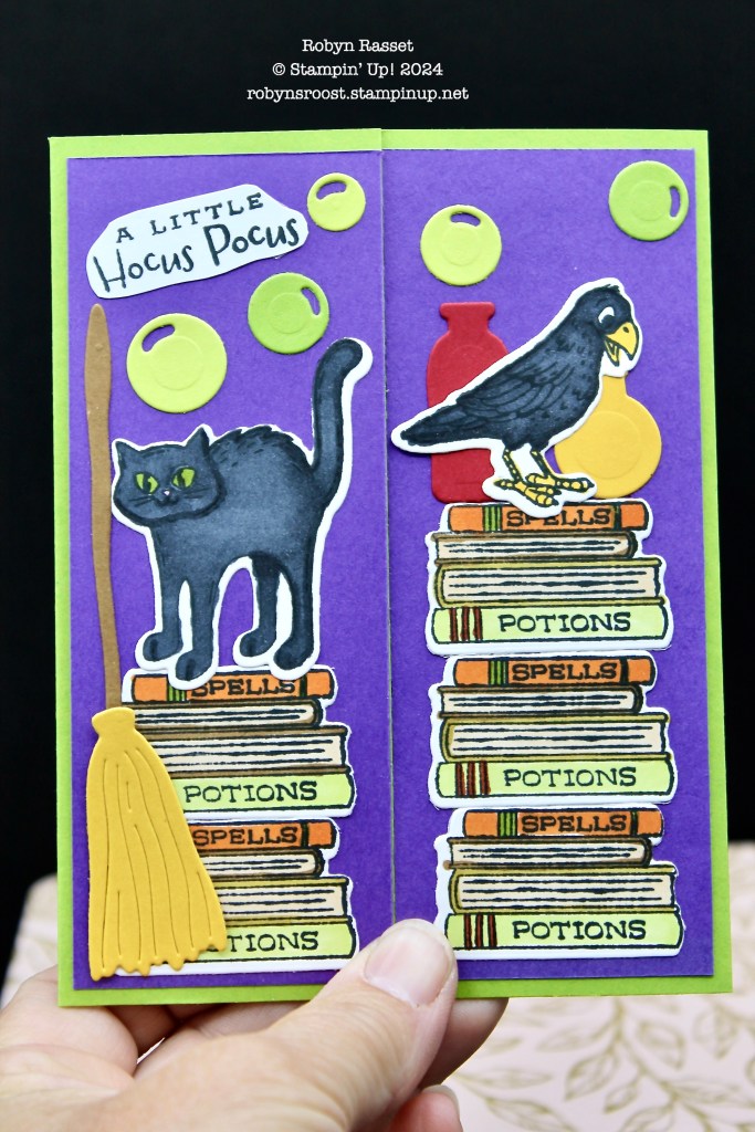 If you like to learn by seeing, be sure to watch my Potions & Spells Bi-Fold Halloween Card Video Tutorial.
