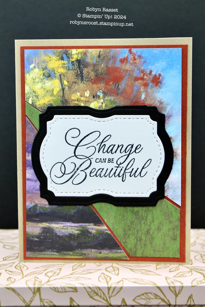 Today’s cards focus on the beautiful colors of autumn. The pretty patterned papers come from the Splendid Autumn Designer Series Paper Pack.