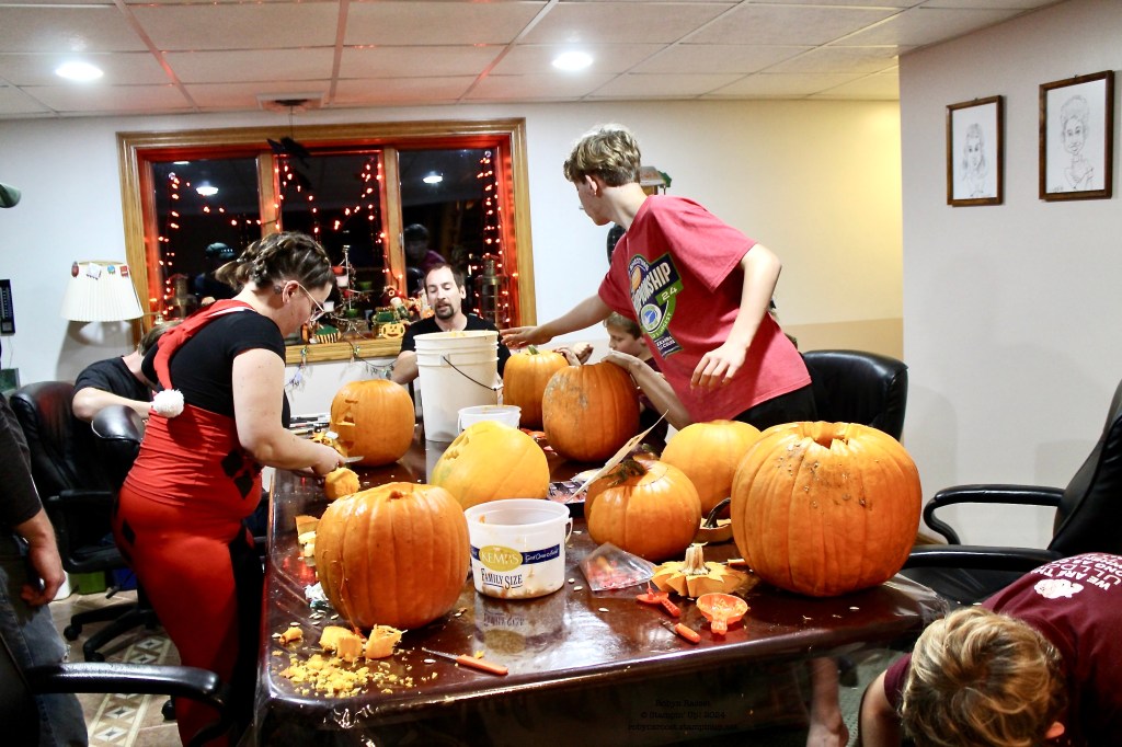We had our annual Pumpkin Carving Party on Friday evening. This year was a bumper crop for Pumpkins, some were so big that the kids couldn’t carry them into the house. The rule seemed to be that if you couldn’t carry it in yourself, you needed to choose a different pumpkin, lol.