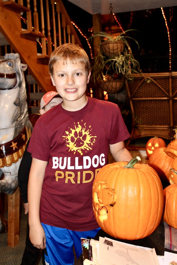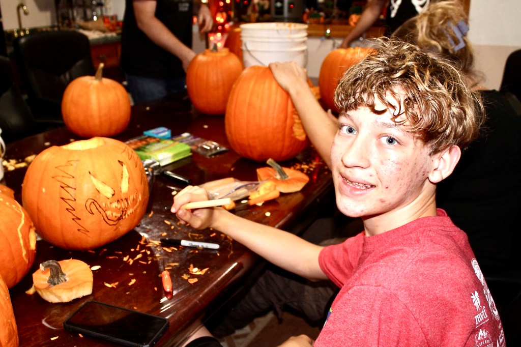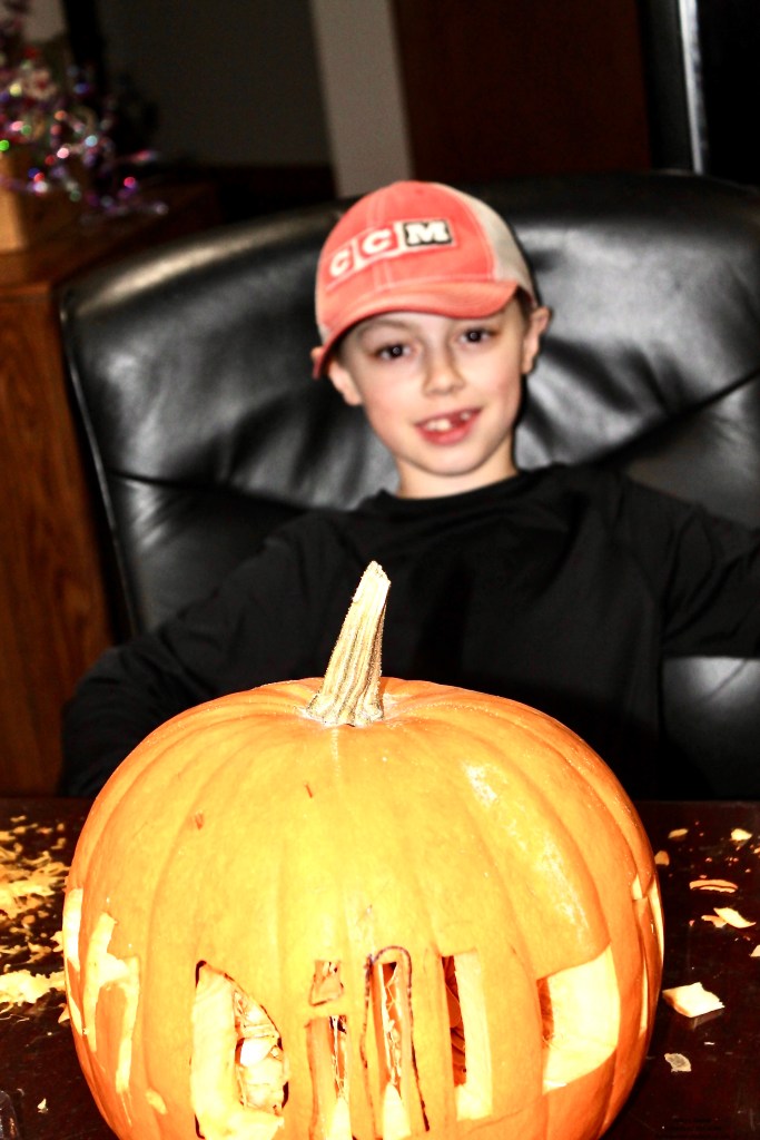 Zen got really creative and carved out his entire name on one of his pumpkins. He isn’t so fond of cleaning out the pumpkins, unlike…