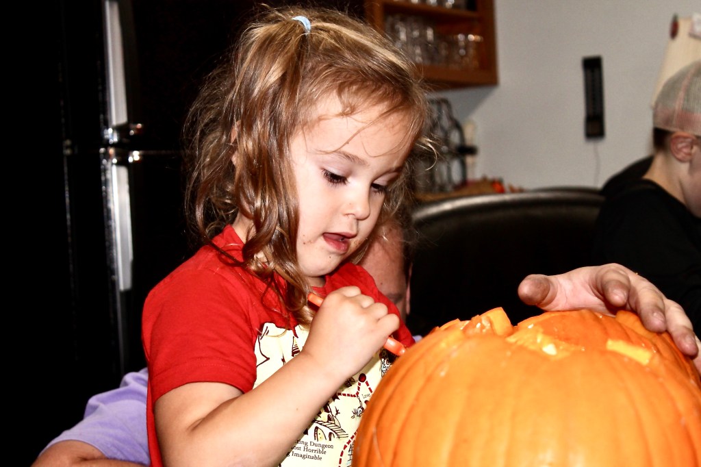 Lilly is the youngest and played with the toys for a long time before she decided to come join in the carving, but once she started she was into it!