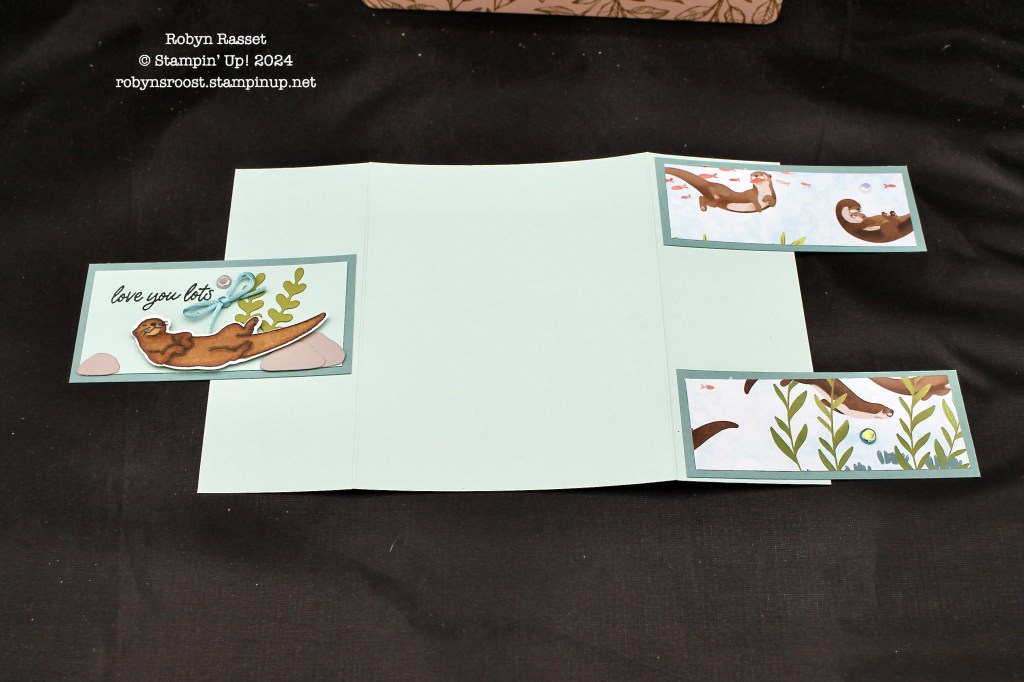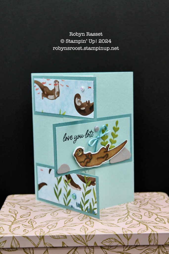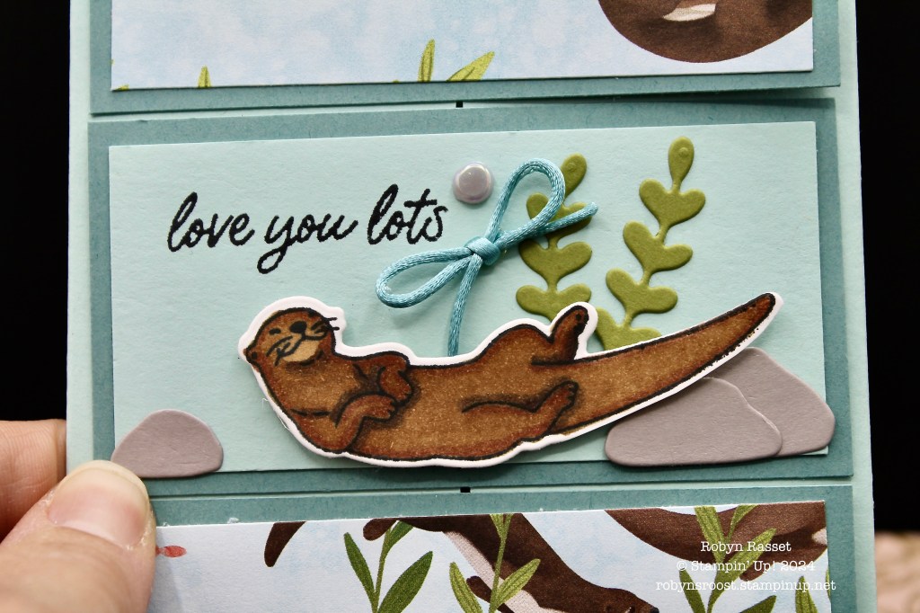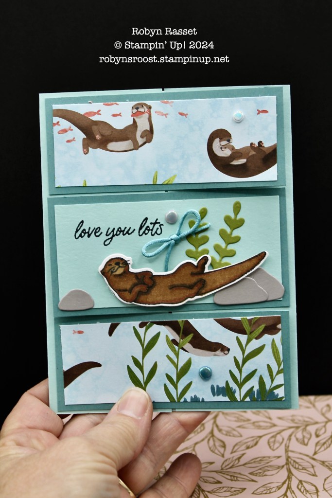 The top and bottom panels of this card use the Otterly Adorable Designer Series Paper, while the center panel is created with stamps and die cuts.