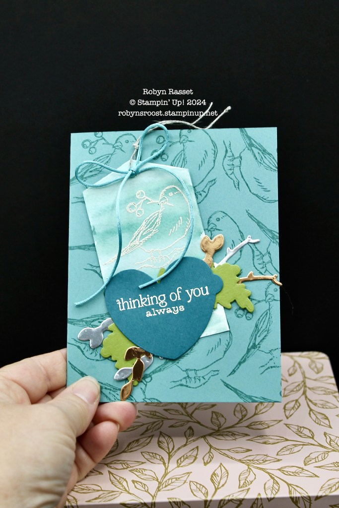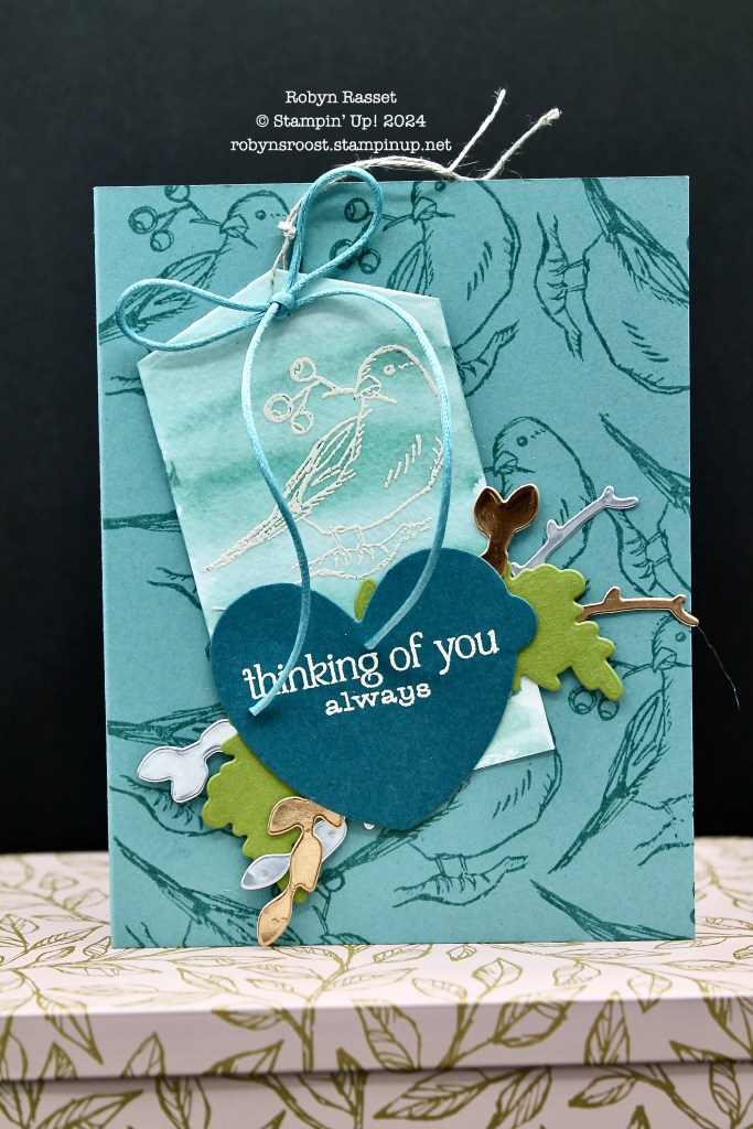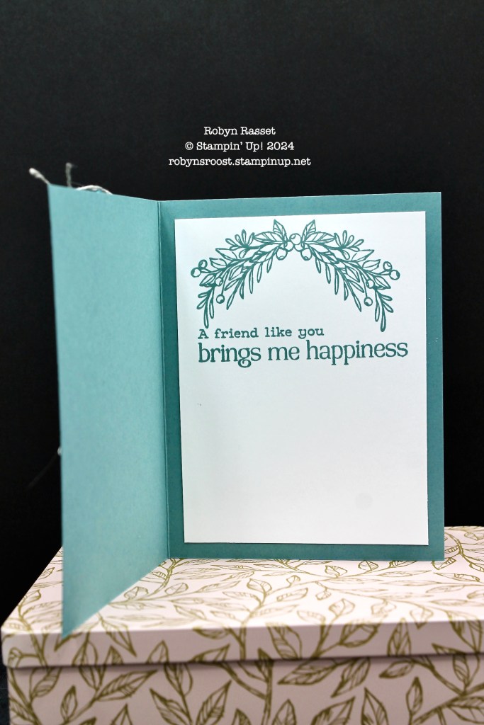 The inside is stamped in Lost Lagoon with images from the Winterly Tree Tops set. I just realized that I didn’t add any gems to the card, do you think it needs some?