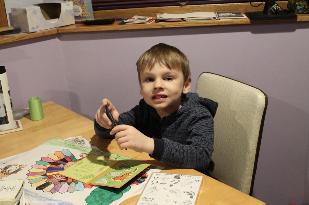 On Friday, our grandson Isaac came over and asked if he could make a birthday card for Salem. Boy, did he make brownie points with grandma! We had a great time picking out stamps and colors. I was a bit nervous letting him color with my Stampin’ Blends but he did an awesome job of being careful with the marker tips. I felt like a nurse handing tools to the doctor, as he called for colors he needed, lol.