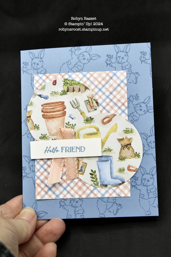 This card was the sample for my Facebook Mystery Card Game yesterday on the Creative Chicks FB group. It uses one of the layouts in the annual catalog on page 22 (second from the end bottom line).
