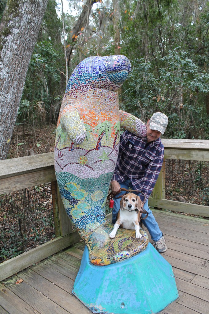 This cool piece of artwork was along the boardwalk. Max loved walking the boardwalk and visiting with all the people and dogs, but wasn’t crazy about posing for a photo.