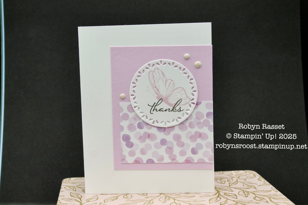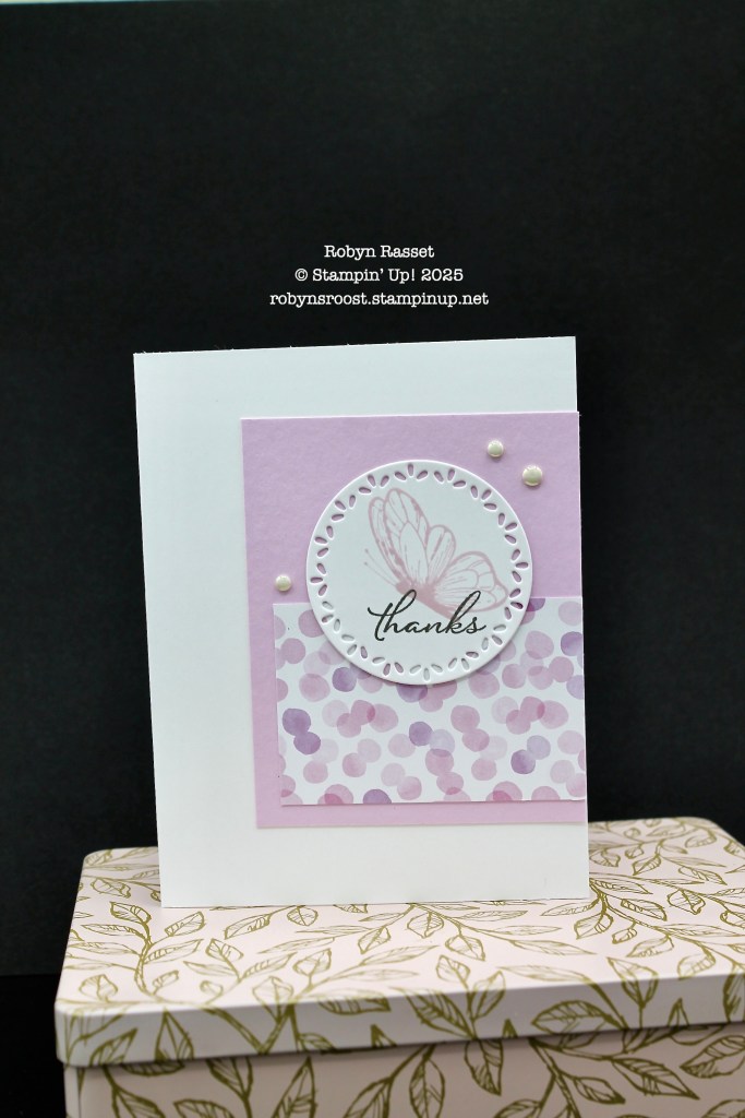 I used the Spotlight on Nature Bundle to create a soft thank you card. This card will be going to one of my customers who placed an order in January. I’ve combined it with some designer paper from the Bright & Beautiful pack.