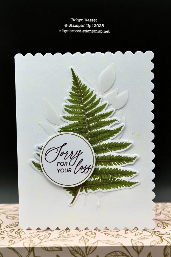 This card simply uses a greeting from the Quiet Reflections stamp set to change it to a sympathy card.