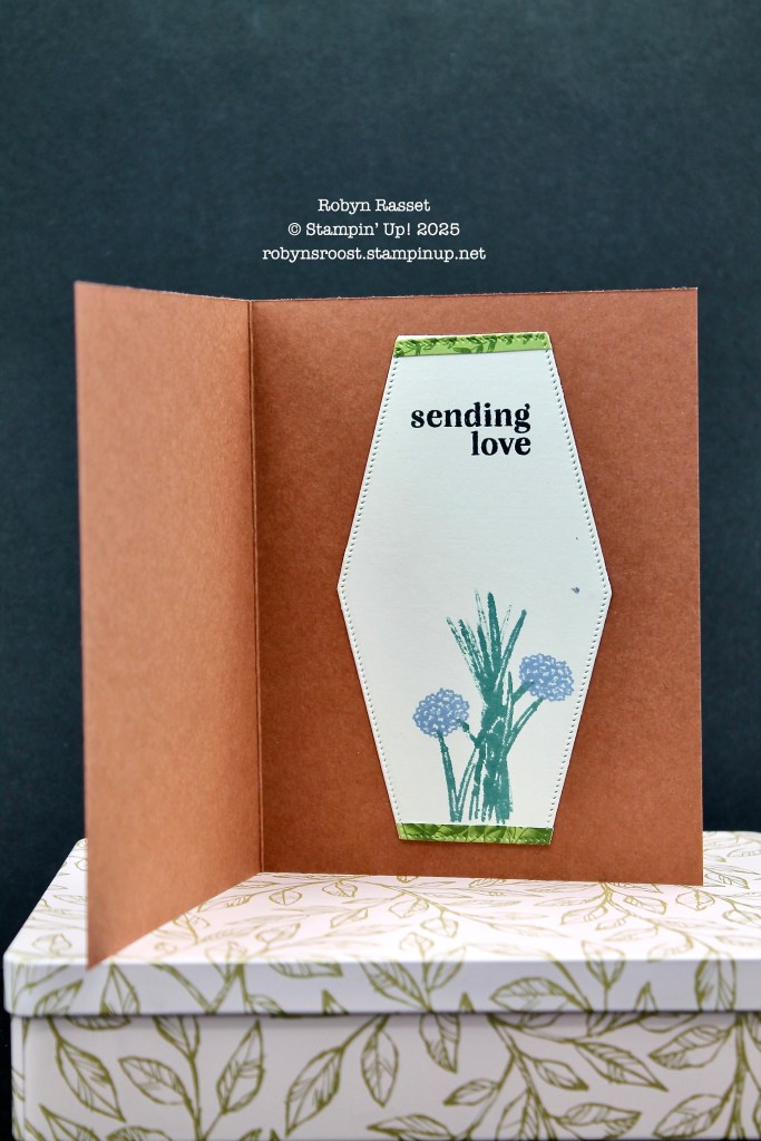 The inside white layer is also 2 1/8″ for a perfect fit for the greeting from the Bouquet of Hope February 2021 Paper Pumpkin.