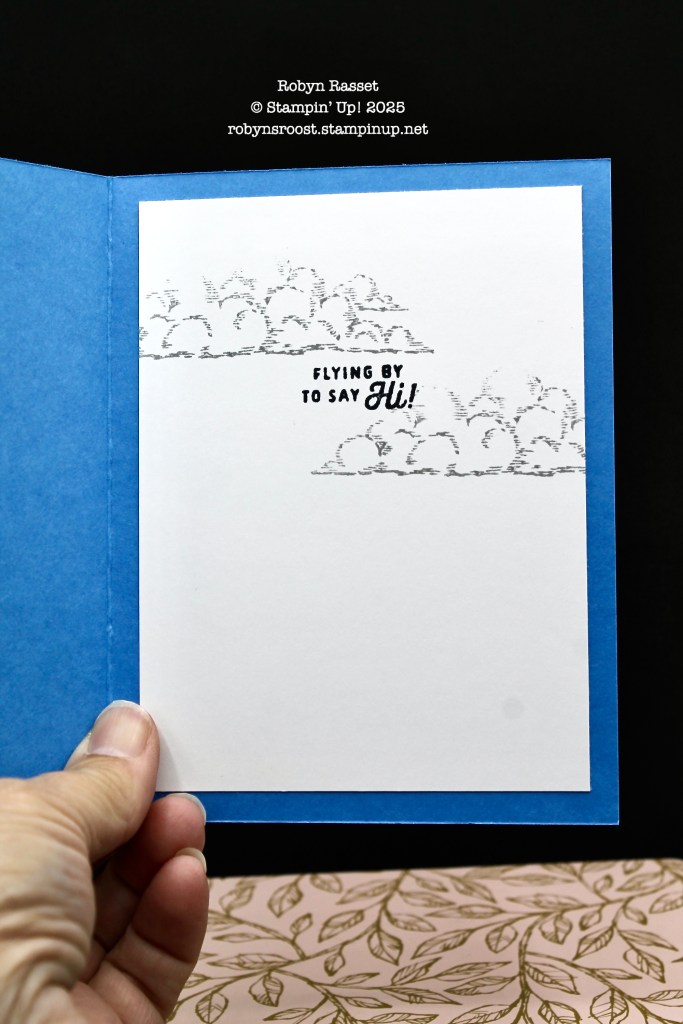 For the inside, I added some clouds stamped with Smoky Slate ink. This is a great layout for a quick and simple card! Be sure to give it a try.