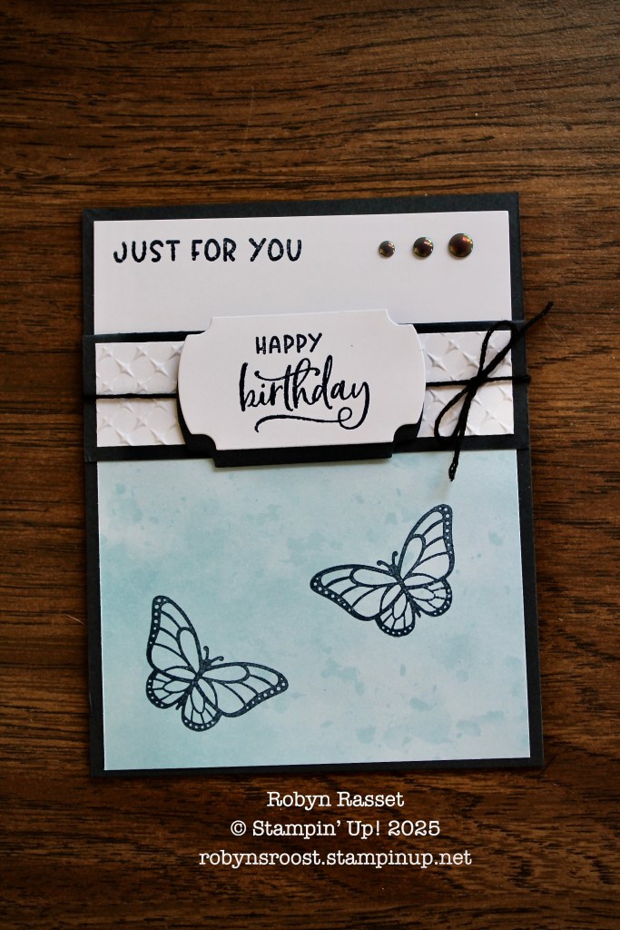 This masculine version of the card uses a Secret Sea card base and gems. Secret Sea is a new In Color for 2025 – 2027 which will be available in the new Annual Catalog in May. You can see this card being created on my Simple Pocket Fun Video Tutorial.