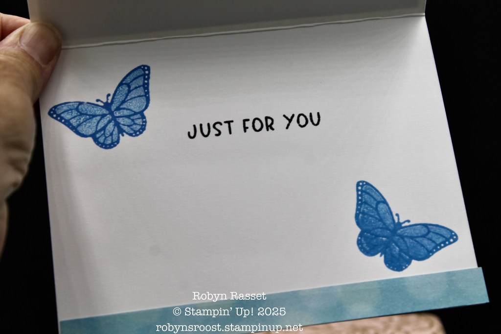 A couple of the kaleidoscope of butterflies has landed on the inside of the card too.