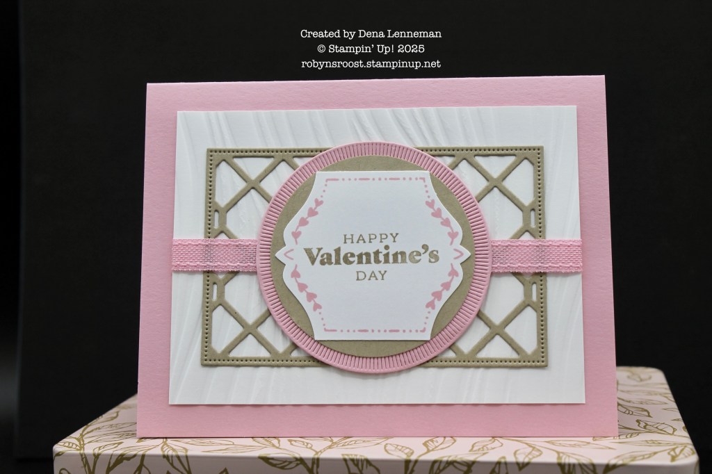 This Valentine card, created by Dena Lenneman, somehow got missed during Valentine season, lol, but it’s a really cute layout and by just switching the greeting it could be used for other occasions. Here are the products used to create this card.
