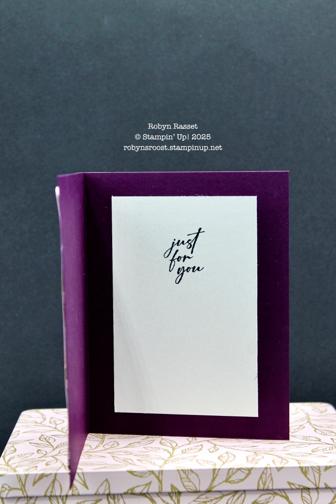 The words that I chose for the inside are from the Unbounded Love stamp set. They are stamped in Blackberry Bliss to coordinate with the card base.