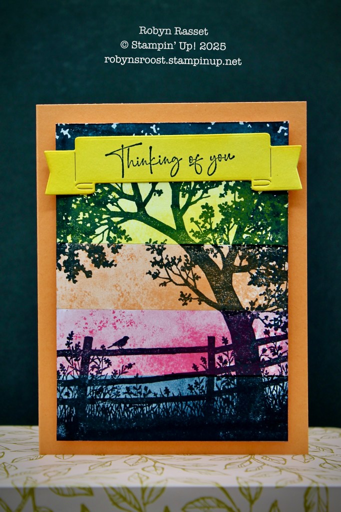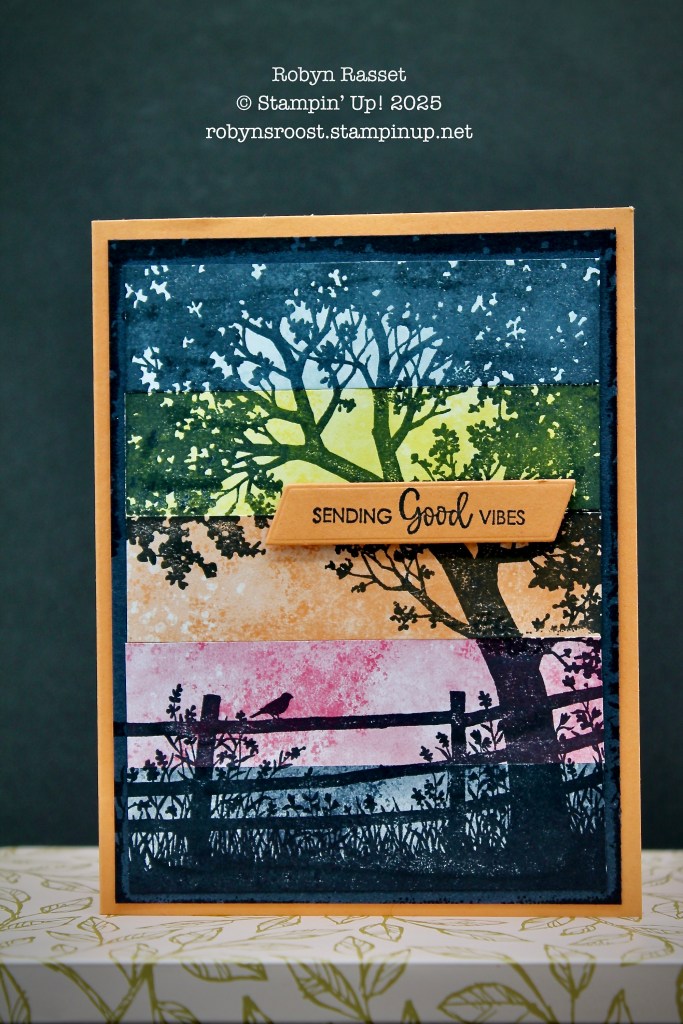 Today I’m playing with the new In Colors and my top pick of stamp sets when I first saw the new Annual Catalog. The Peaceful View stamp is a single large rubber stamp.