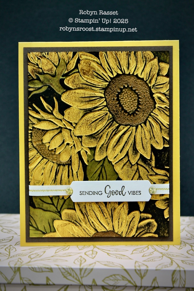 This card was created the exact same way as the first card for my Sunflower 3D Embossing Folder Video. It features some products from the upcoming September to December Mini Catalog and new Online Exclusives.