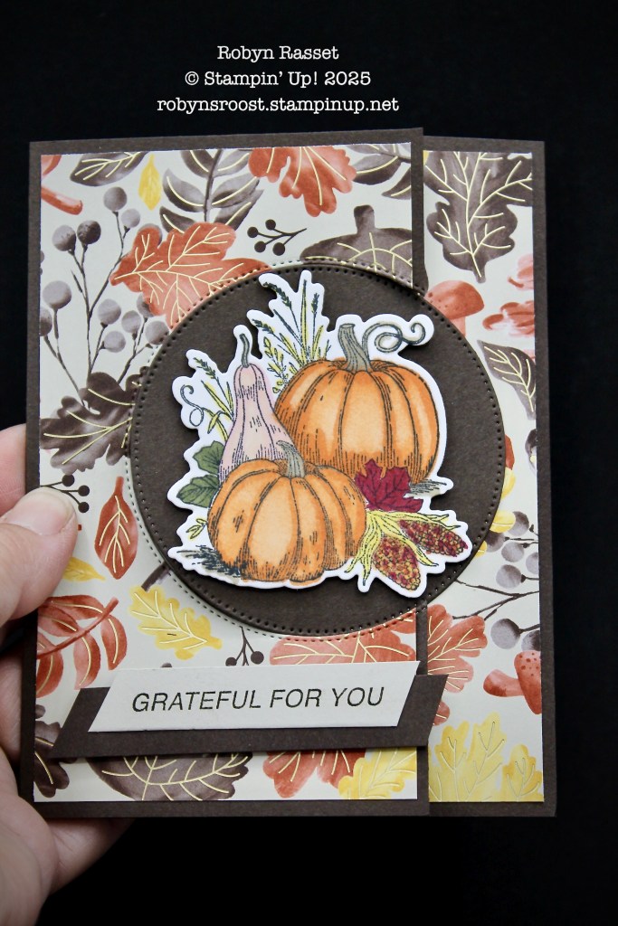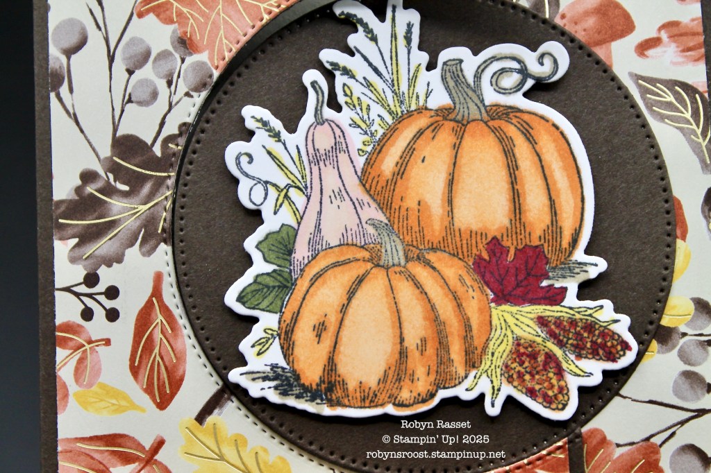 The designer paper used on this card is from the Gathering Together DSP pack. I love the foil accents! I can’t decide which is my favorite DSP for fall this or the Autumn Toile, both are so pretty.