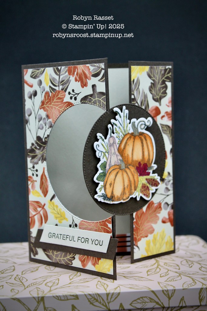 Here is my original sample card above and below is the one that I created during my Tri-Fold Fall Thanks Card Video Tutorial