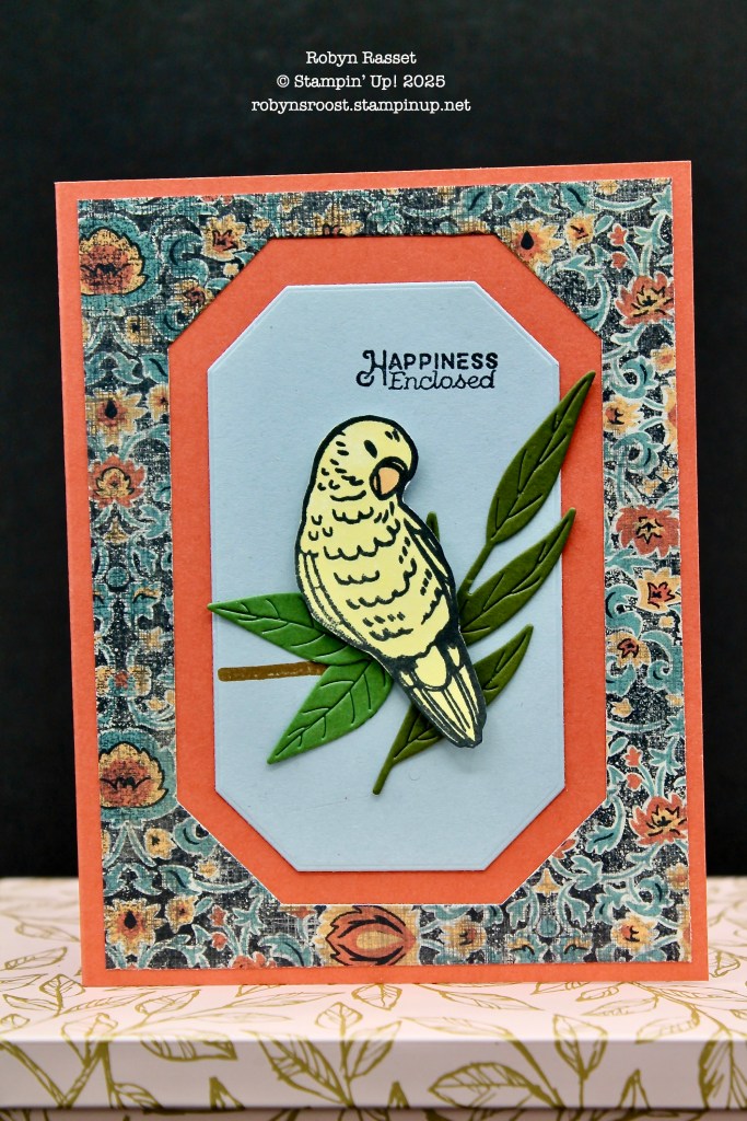 You might guess that I like birds with a business name like Robyn’s Roost. So, I thought I would share with you a card created with the Feathered Fun stamp set.