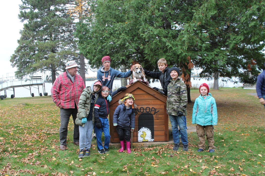 There was this cute little Snoopy Dog House covering something in the campground and my daughter-in-law jokingly mentioned that we should get a picture of Max, our 14 year old Beagle on top of the dog house. So we all hiked down to the landing and got a group picture with the kids and my uncle. All of the kids were very cooperative (unusual) I think mostly because they were trying to get Max to cooperate! He was a little nervous about sitting on that roof.