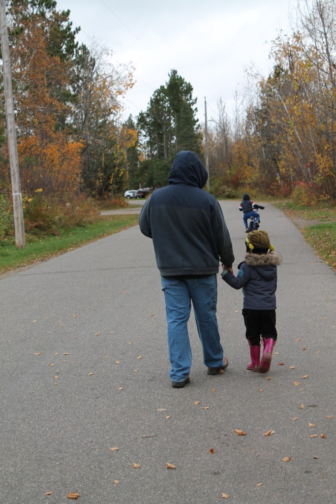Our group this year included all 7 grandkids and 7 adults. For the past 3 years we have been going to Fisherman’s Point Campground in Hoyt Lakes. My 90 year old uncle lives there and he comes out and hangs out with us at the campsite and even takes us all out to a fish fry at a local restaurant in Aurora called Megan’s. The businesses have lots of fun Halloween decorations that the kids (and adults) enjoy seeing. This year we all noticed how much better behaved the gang was in the restaurant (kids ages 4 to 14). No one even spilled a drink!