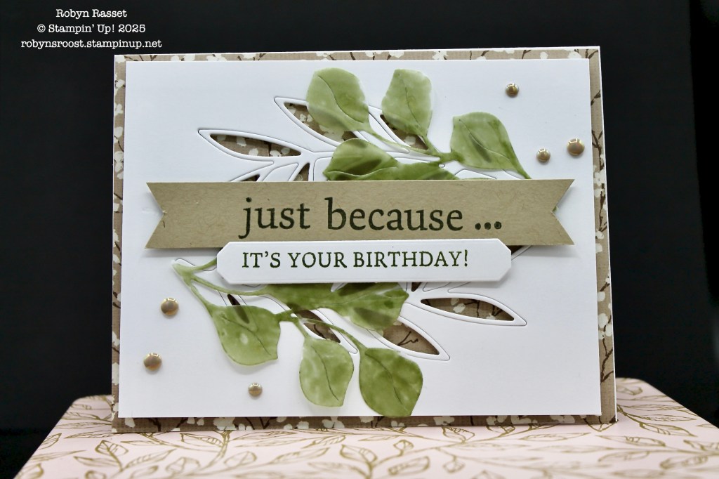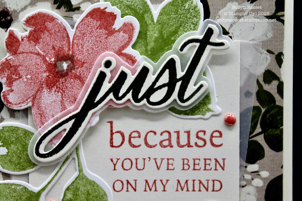 The Words of Beauty Bundle has word stamps that build to create greetings and dies that cut out shadows and layers of the words ‘just’ and ‘because’.