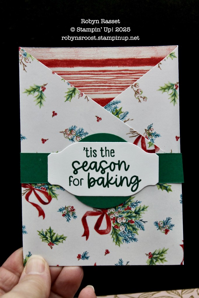 Here’s a quick and easy pouch for giving small gifts like hot cocoa packets. The first two pouches use the More Than Autumn Bundle to decorate them. The last one uses the Homemade Treats stamp set.