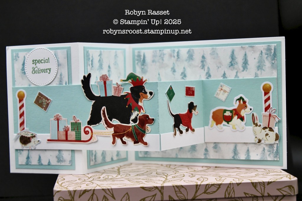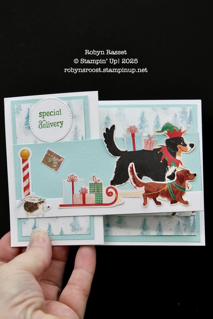 Calling all dog lovers! This fun double Z Fold card features the North Pole Delivery Designer Series Paper.