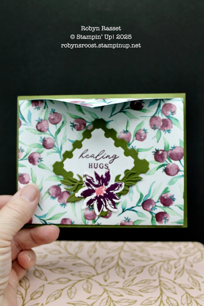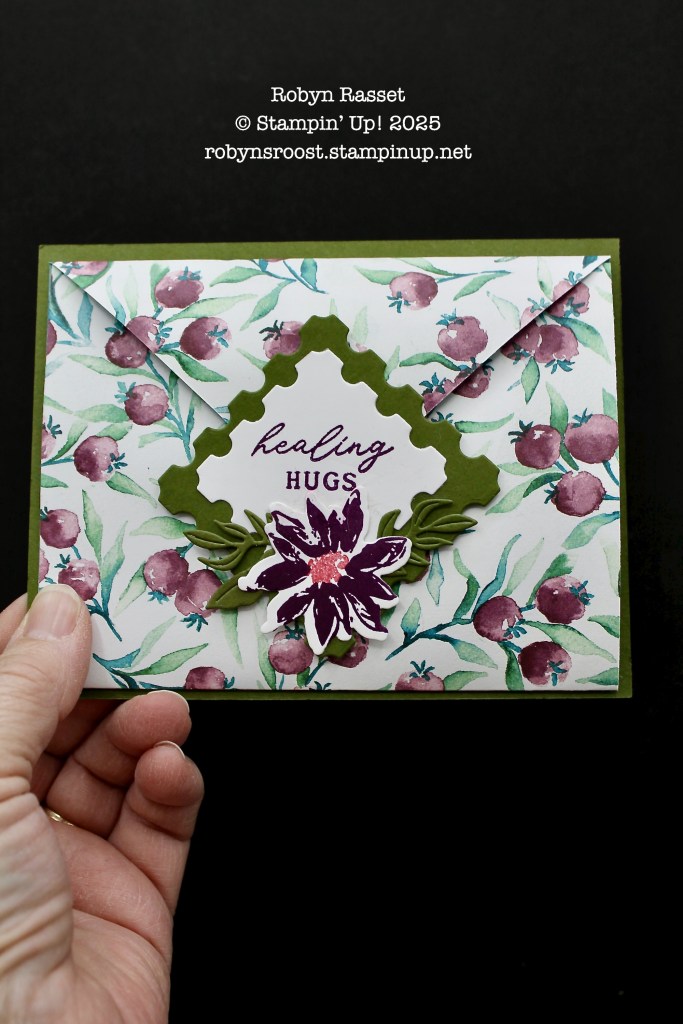 I did manage to get a video tutorial done for you. This card design is one that we did at the Creative Cards Class earlier in the month. It’s a really cool fold using designer paper to create an envelope style card.