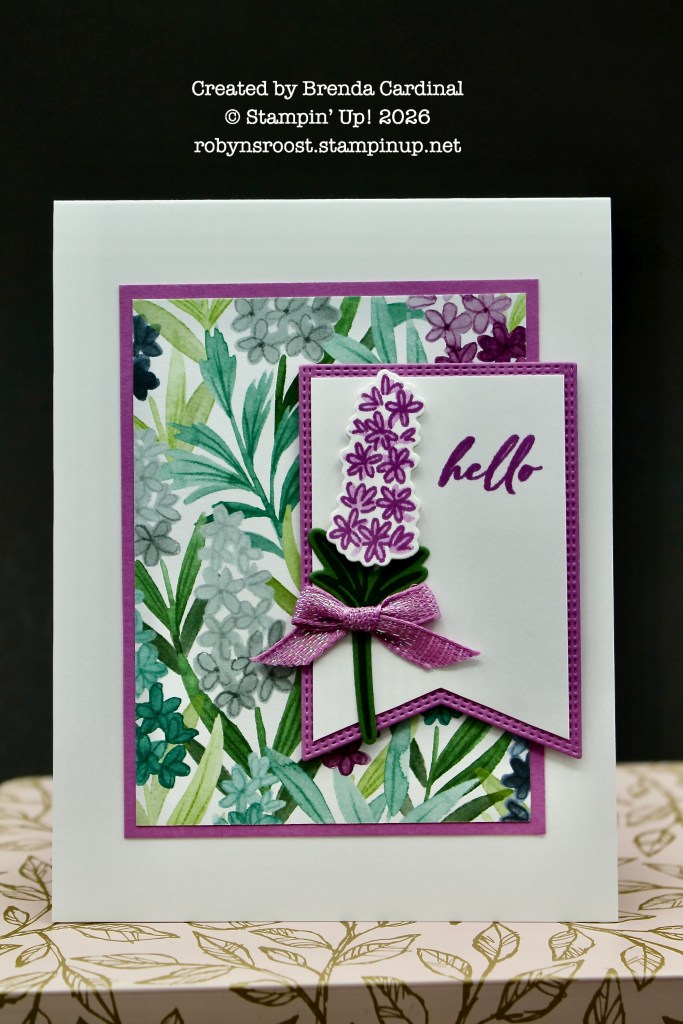Our first card created by Brenda Cardinal uses the Pretty Florals Bundle to create the flowers. I’m not sure which set Brenda pulled the greeting from, lol, I spent a half hour looking and didn’t find the exact ‘hello’. I did find that there are MANY hello stamps in various sizes and fonts!