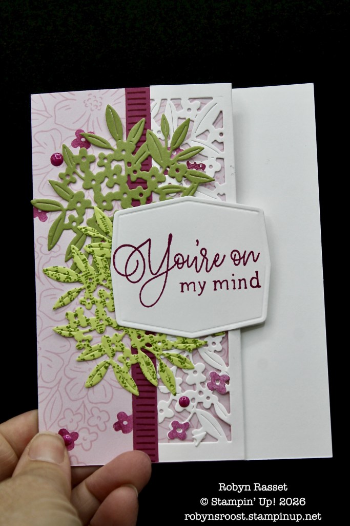 Today I have three more beautiful cards from the Virtual Retreat. The first is a tri-fold beauty featuring lots of coloring with Stampin’ Blend Alcohol Markers.