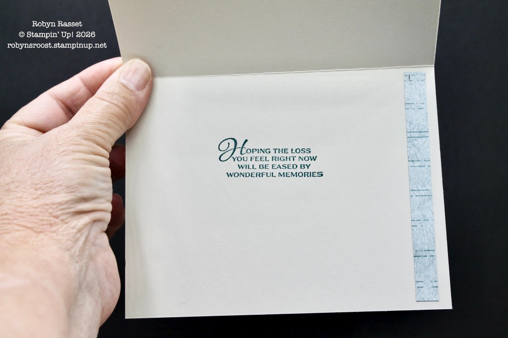 It seems the older I get the more sympathy cards I need, but I don’t LIKE making sympathy cards. It makes me think of loss, but today I’ve got a sympathy card created during a Mystery Stamping Game during a Zoom meeting.