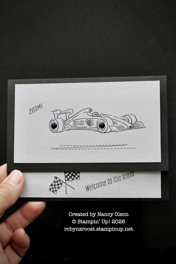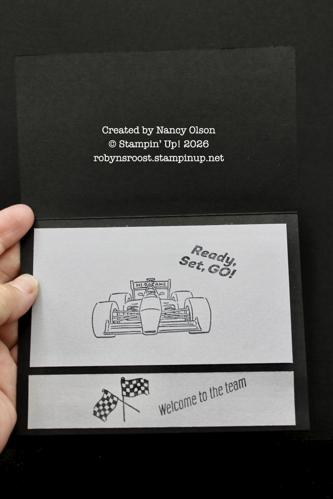 Nancy’s card features the Read Set Go stamp set, and is done with a Matchbook style Fun Fold.