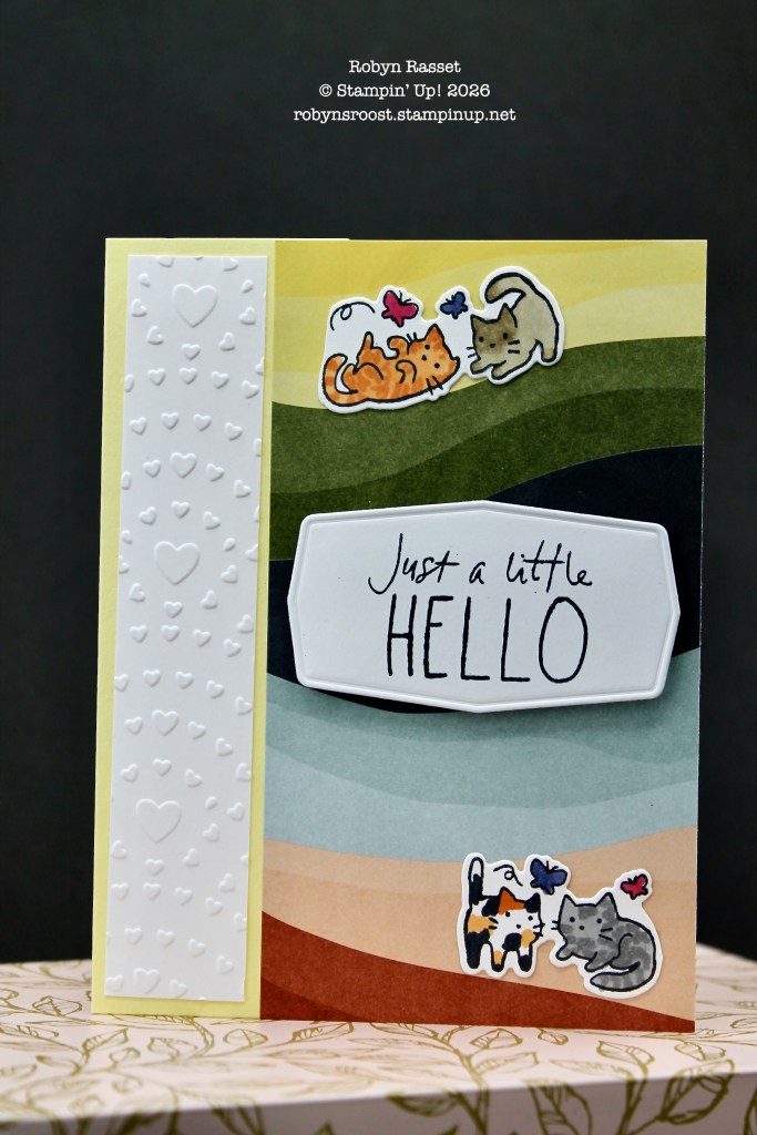 Here’s another card done with the Boho Vibes DSP, Cutest Crew Bundle, and Hearts of Love Embossing Folder.